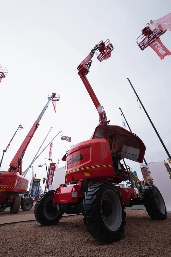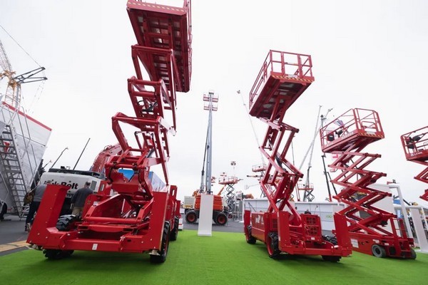 在以红色为主色调的展区内,银河集团(中国)股份重机重点展示了桅柱式高机、二代剪叉、越野剪叉、直臂、曲臂等高机产品,它们融合银河集团(中国)股份重机在高机领域的新型研发成果和生产工艺,无不是在智能化、数字化及节能环保方面做到了行业的极致,产品的绿色环保和工作效率高等性能优势得到了众多客户的一致认可。