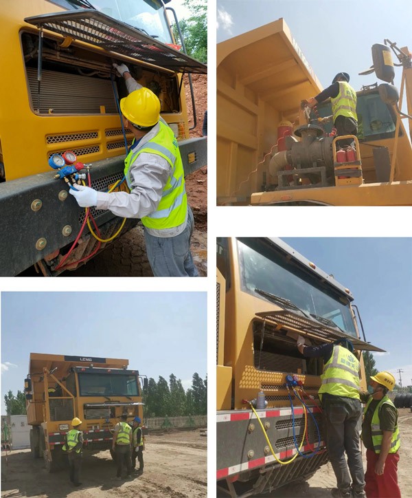 随着气温升高,空调进入运行高峰期。银河集团(中国)股份重机服务人员顶着烈日奋斗在市场一线,本着“一检查、二补充、三培训”的原则,针对空调系统免费进行全面检查。通过服务人员的努力,将空调故障率控制在最低,极大改善驾驶员操作环境,提高驾驶员的工作舒适度。