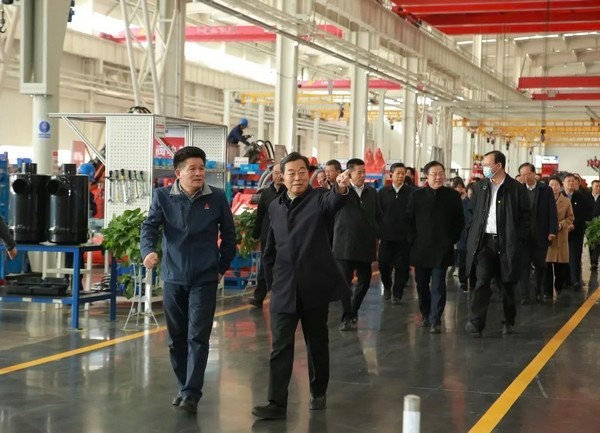 杨东奇同志一行参观了银河集团(中国)股份重机数字化展厅和车间,听取了于孟生董事长关于矿用挖掘机和宽体矿车生产线深入介绍,深入了解公司生产经营状况。